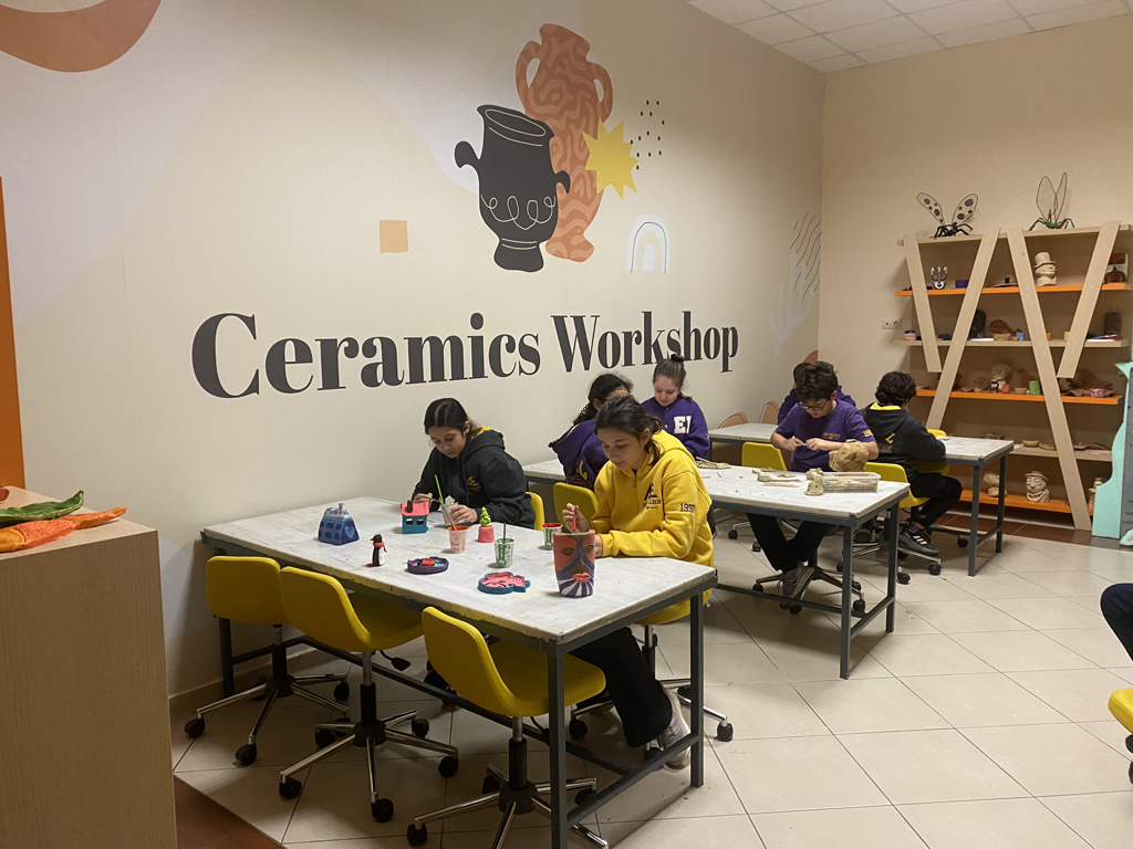 AREL Koleji Seramik Atölyesi, öğrencilerin yaratıcılıklarını keşfetmeleri ve el becerilerini geliştirmeleri için özel olarak hazırlanmış ilham verici bir öğrenme alanıdır. Bu atölyede öğrenciler, tasarımın temel ilkelerini öğrenerek hayal güçlerini somut eserlere dönüştürme fırsatı bulurlar.